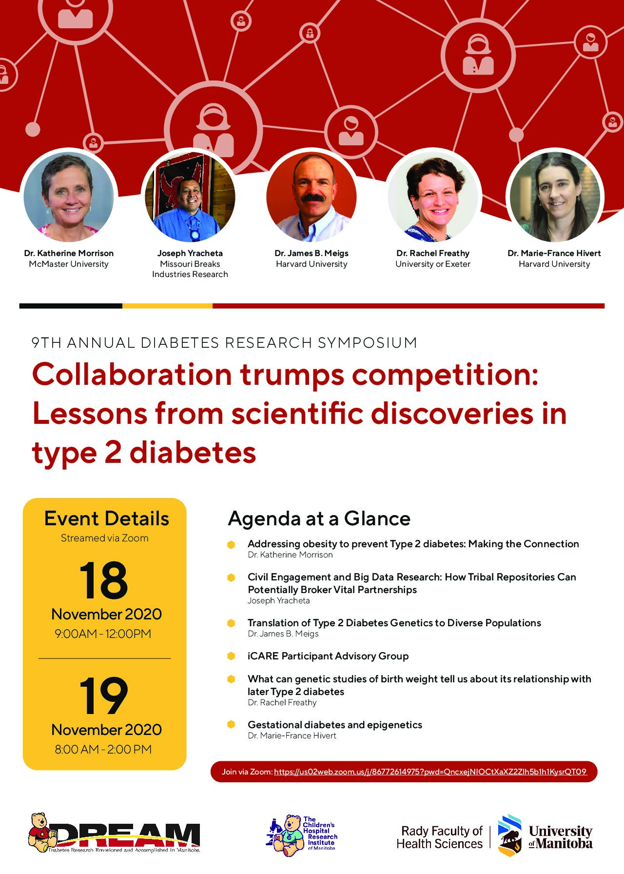 John Buhler Research Centre 715 McDermot Ave, Winnipeg, MB, CanadaGUEST SPEAKERS: Dr. Bruce Verchere (University of British Columbia), Dr. Phil Zeitler (University of Colorado), Dr. Patrick Schrauwen (Maastricht University) A variety of interventions currently being done, both with animal models and human participants, were presented to show what is being done to prevent and treat type 2 diabetes, and what the next steps are.